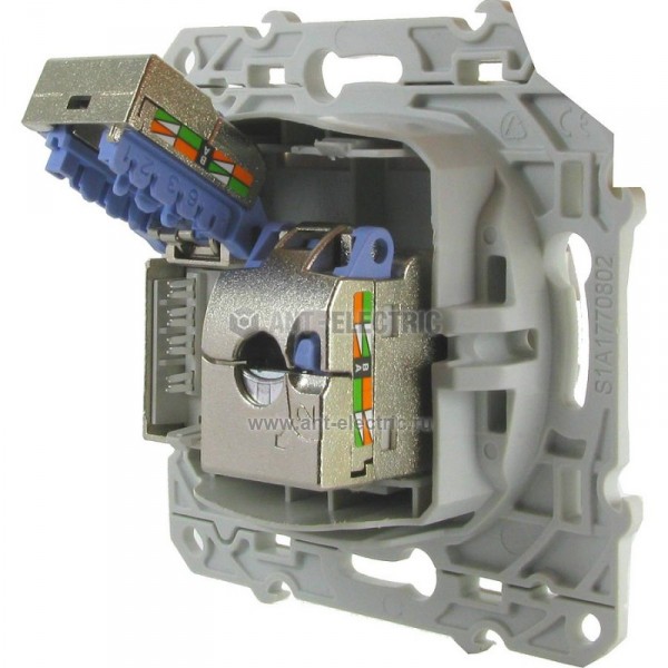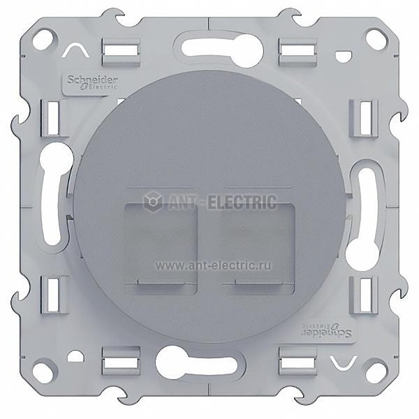 Розетка интернет (компьютерная) двойная Цвет: алюминий. Разъём: 2 х RJ45, 8 контактов. Категория: 5е. Степень защиты: IP21.