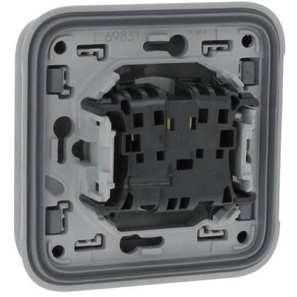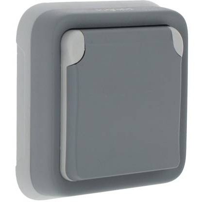 Розетка «евро» французский стандарт, со шторками, IP55, скрытой проводки, серая