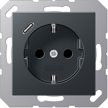 Розетка с заземлением + USB тип C, Jung 16А/250В антрацит матовый