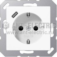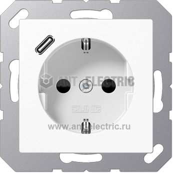 Розетка с заземлением + USB тип C, Jung 16А/250В белый глянцевый