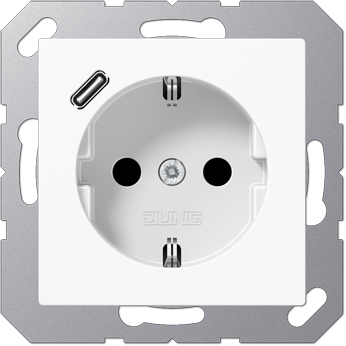 Розетка с заземлением + USB тип C, Jung 16А/250В белый глянцевый