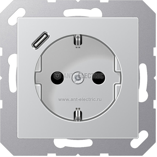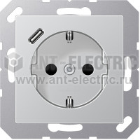 Розетка с/з с USB-зарядным устройством, тип C термопласт, серия A (алюминий) Артикул: