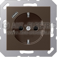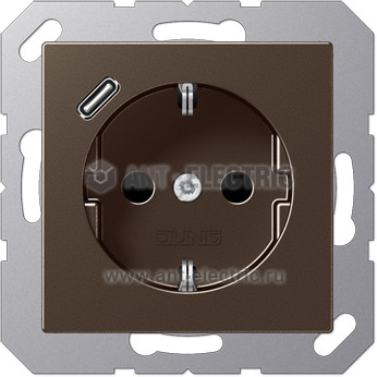 Розетка с заземлением + USB тип C, Jung 16А/250В мокко A1520-18CMO