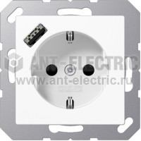 Розетка с заземлением + USB тип A, Jung 16А/250В белый глянцевый