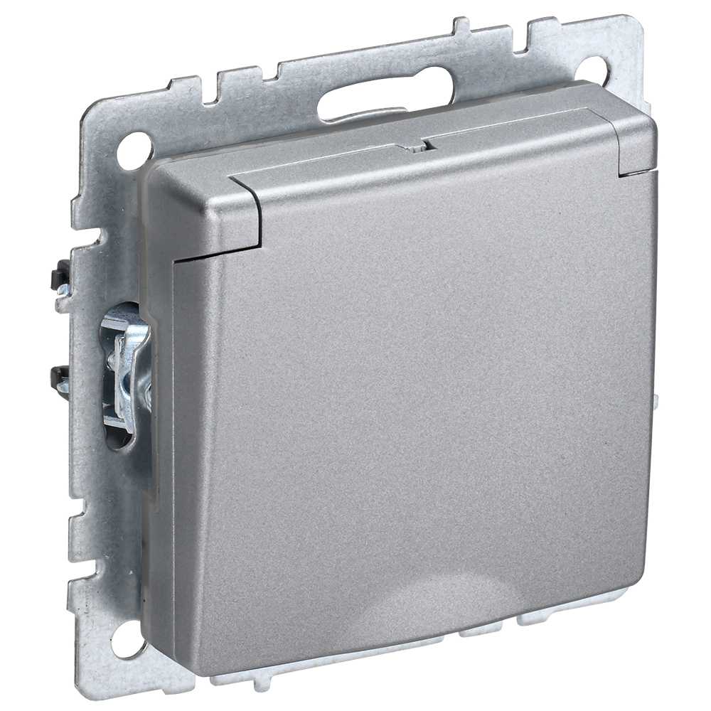 Розетка "евро" BRITE электрическая с заземлением с откидной крышкой IP20 с/з немецкий стандарт алюминевая 16A