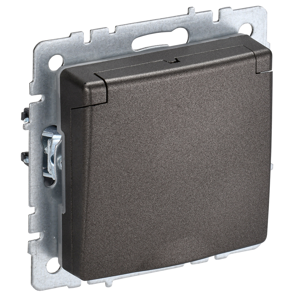 Розетка "евро" BRITE электрическая с заземлением с/з немецкий стандарт бронзовая 16A с защитными шторками для ванной с откидной крышкой IP44 (влагозащищенная)