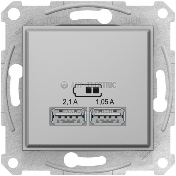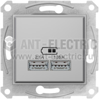 Розетка Sedna 2-ая USB 2,1А (2x1,05А) (алюминий)