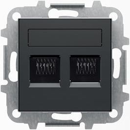 Розетка Sky Niessen компьютерная информационная для локальных сетей 2-ая двойная RJ45 UTP не экранированная категория 5e (5е), чёрного цвета