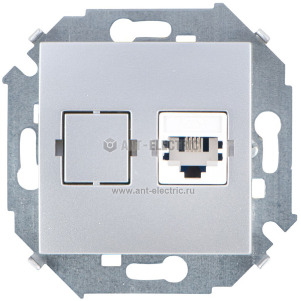 Simon 15 Алюминий Розетка ТЛФ 1-аяRJ11, винт.зажим