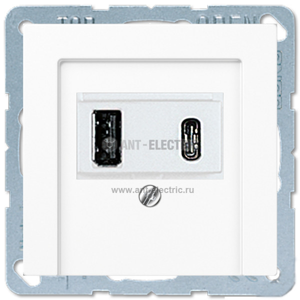 Розетка USB двойная для зарядки тип А+С, 2x700мA, винтовой зажим, белый глянцевый A569PLTWW + USB15CAWW