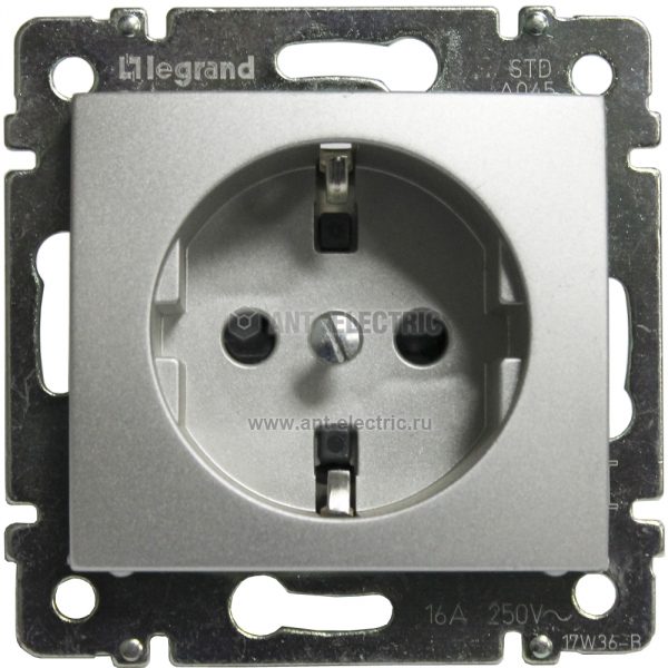 Розетка Valena 2К+З нем. ст., защ. шт., авт. клеммы (алюминий) Артикул: