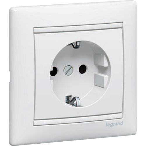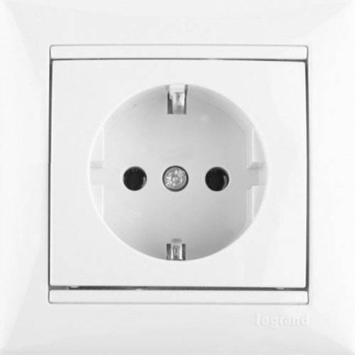 Розетка "евро" Валена электрическая с заземлением с/з немецкий стандарт белого цвета в комплекте с рамкой (в сборе)