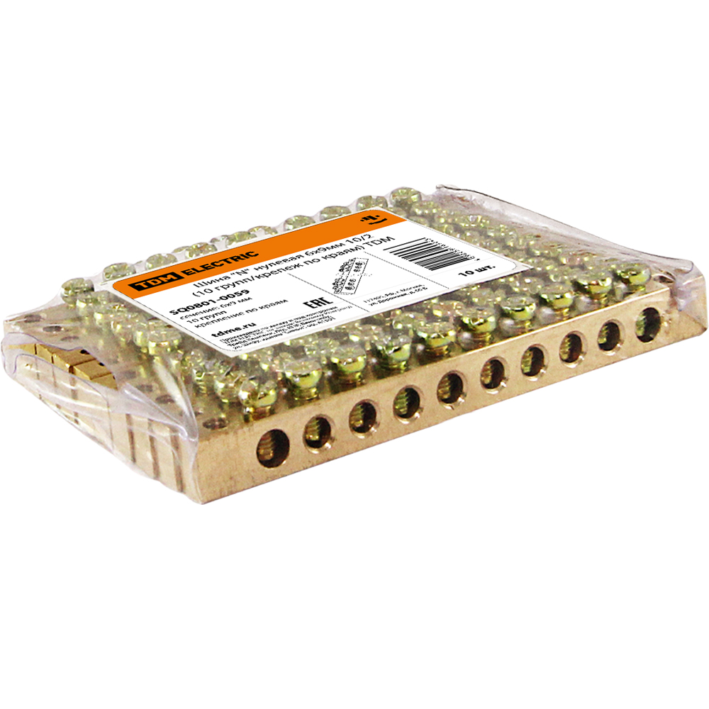 Шина "N" нулевая 6х9мм 10/2 (10 групп/крепеж по краям) PEN "земля-ноль" крепление по краям