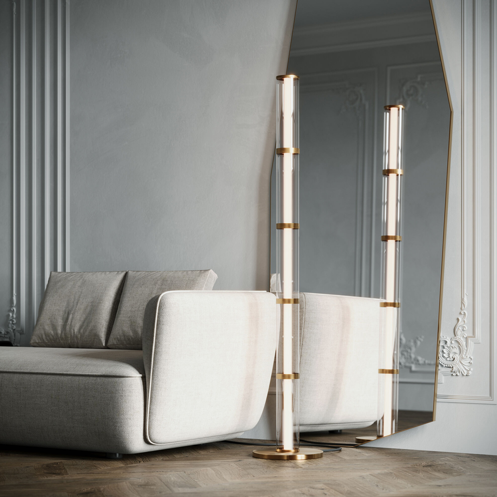 Белые трубчатые плафоны, дополненные прозрачным стеклом, создают эффект визуального парения, мягко рассеивая свет. Элементы по форме напоминают яркие векторные стрелы, которые указывают путь к инновационным идеалам, соединяя функциональность с эстетической выразительностью.