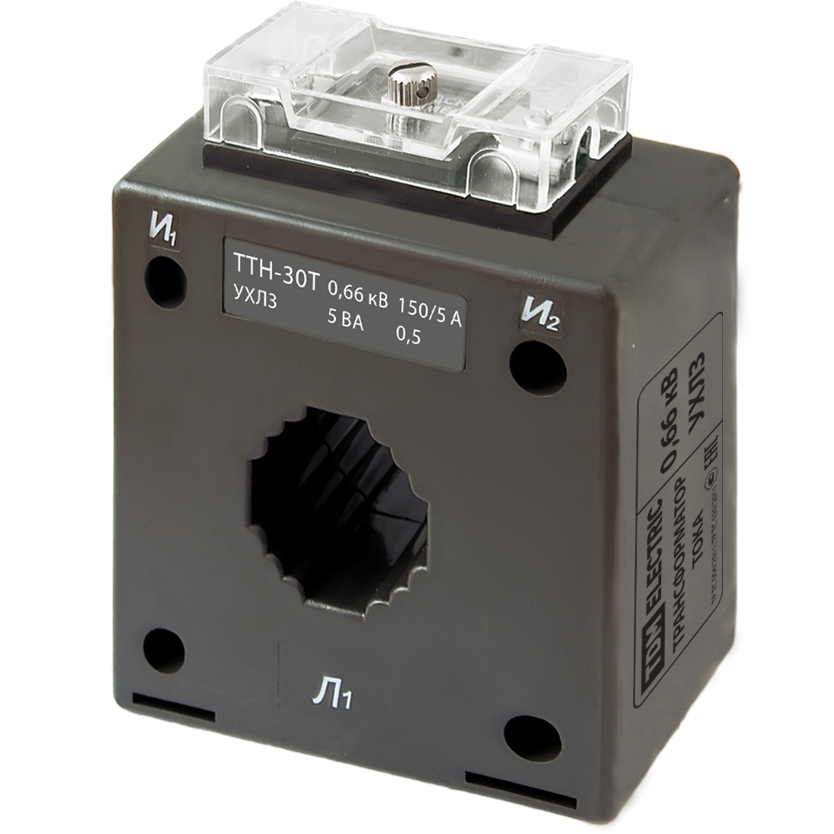 Трансформаторы тока ТТИ-30 150/5А 5ВА без шины применяются в схемах контроля энергопотребления с помощью измерительных приборов, учёта энергопотребления, управления средствами автоматами и защиты.