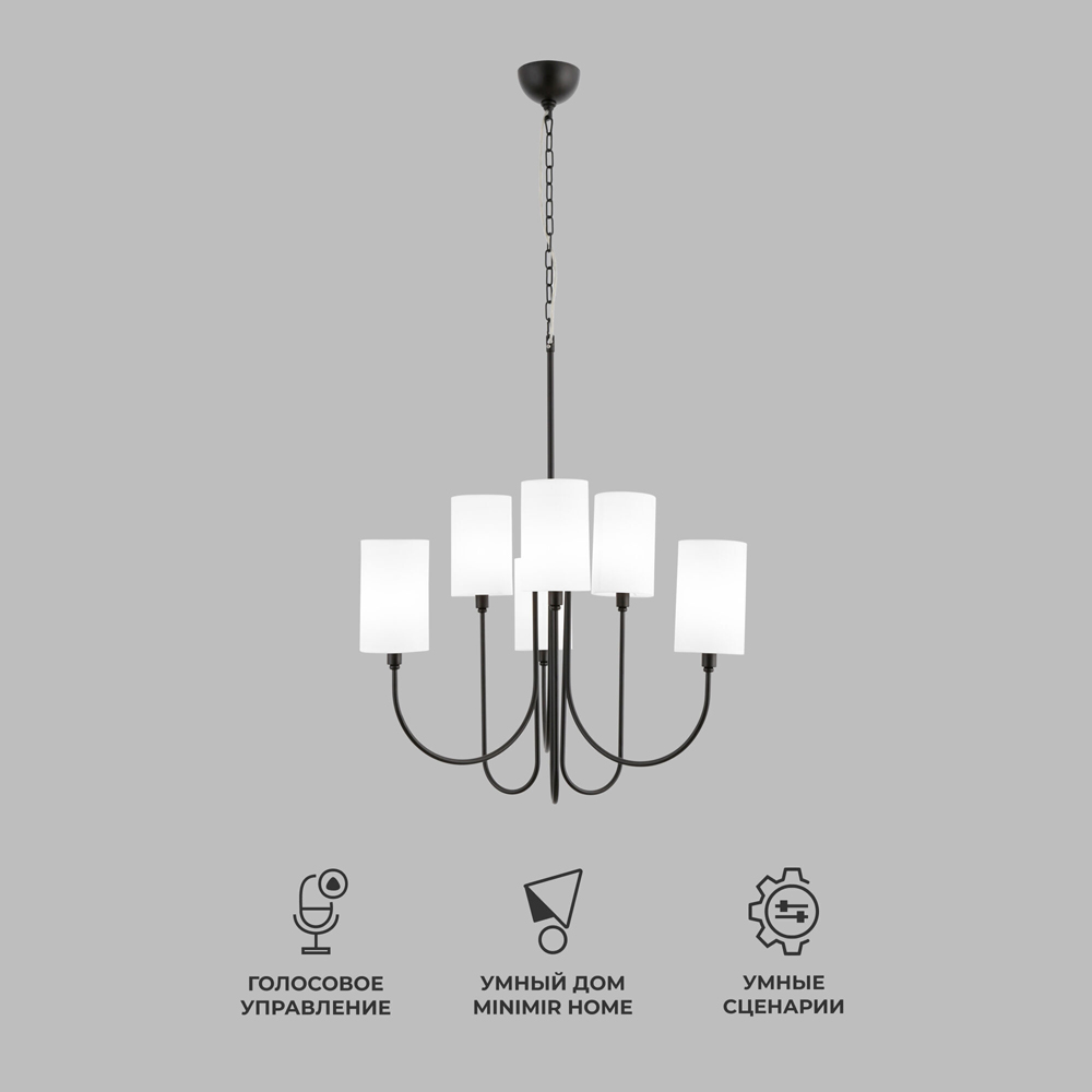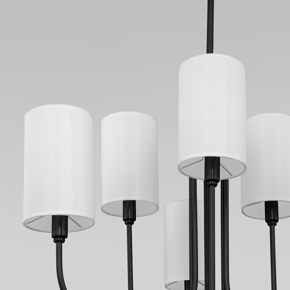 Подвесная люстра с тканевыми абажурами 60164/6 черный предназначена для создания основного освещения в современных и классических интерьерах, подходит для различных типов помещений: гостиная; спальня и рассчитана на площадь освещения 11 м².