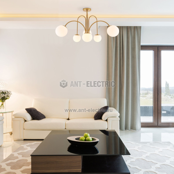 Люстра украсит потолок вашей гостиной и создаст полноценное освещение на площади 18 м². В люстре рекомендуется использовать сменные лампы с цоколем Е27 с максимальной мощностью 40 Вт. В производстве люстры использовали высококачественный металл с надежным защитным покрытием и закаленное стекло.