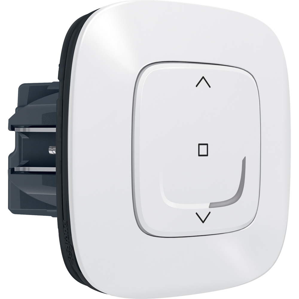 Умный проводной выключатель рольставней заменяет традиционный выключатель (электронный или электромеханический), Он позволяет управлять рольставнями непосредственно или дистанционно, с помощью умных беспроводных выключателей рольставней, приложения Legrand Home+Control или голосовых помощников.