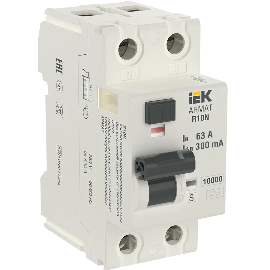 ARMAT Выключатель дифференциального тока R10N (УЗО) 2п 63А 300мА тип A-S (AR-R10N-2-063AS300)