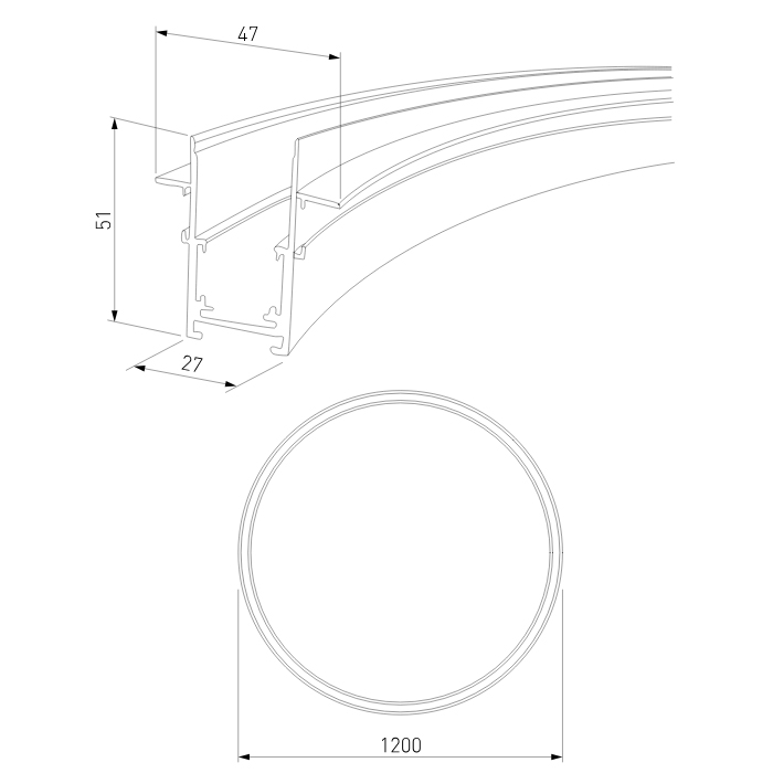 Slim Magnetic Встраиваемый радиусный шинопровод черный ⌀ 1200мм