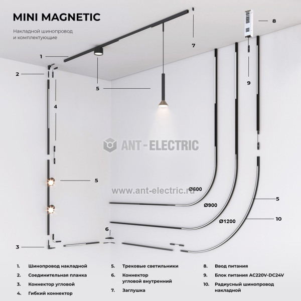 Mini Magnetic — ультратонкая низковольтная магнитная трековая система, предназначенная для создания уникальных дизайнерских решений. Благодаря своим компактным размерам она гармонично вписывается в любой интерьер.
