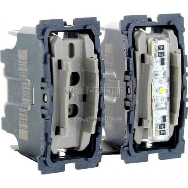 Механизм выключателя двухклавишного с подсветкой, скрытой проводки