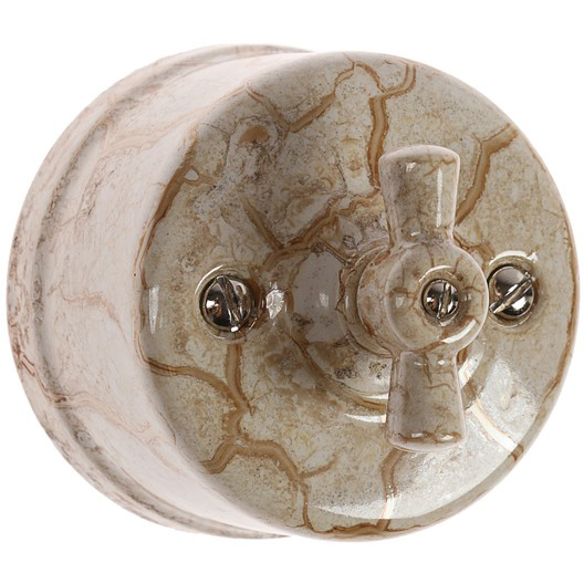 Выключатель фарфоровый поворотный с ручкой (бантик) 10А мраморный серии "Болонь" накладной одноклавишный, винтажный под старину