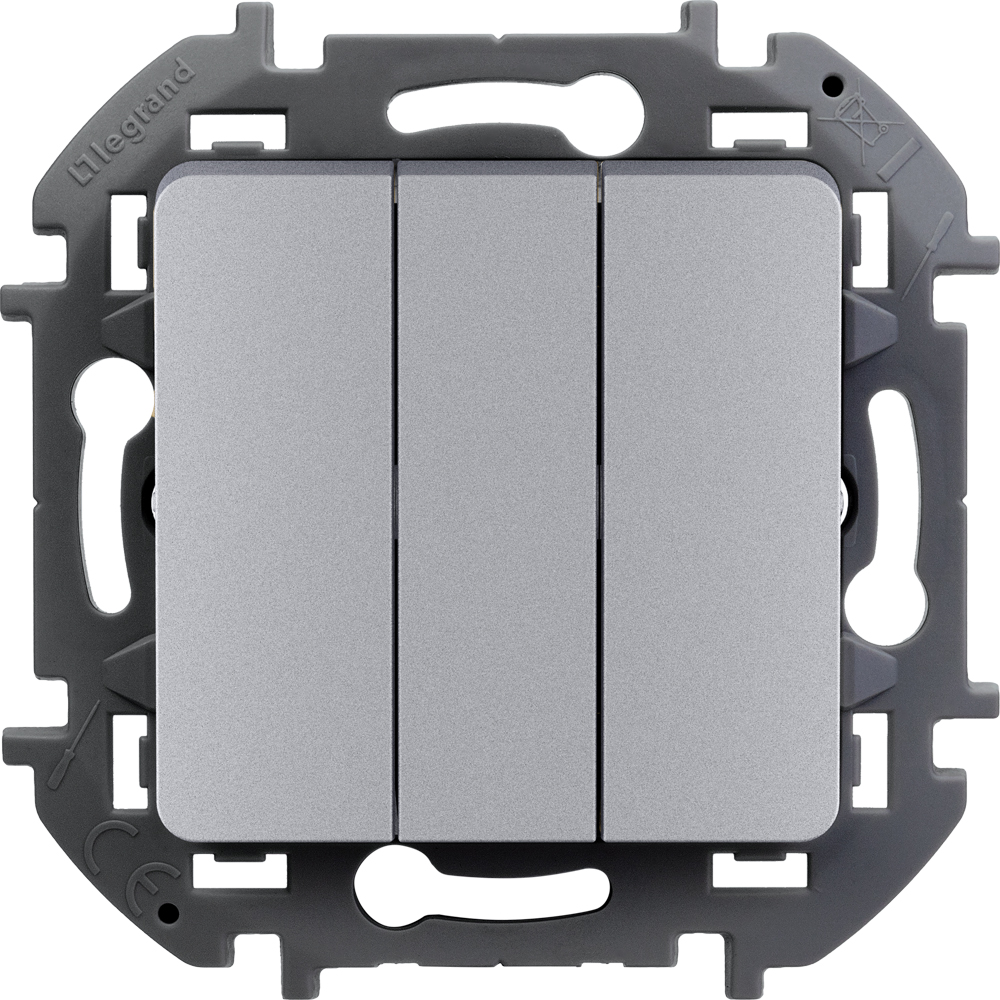 Выключатель 3-клавишный трёхклавишный INSPIRIA 10АХ (алюминий)