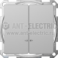 Выключатель Merten D-Life 2-клавишный с подсветкой, 10А (нержавеющая сталь)