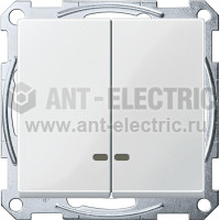 Выключатель Merten System M 2-клавишный с подсветкой, 10А (белый)