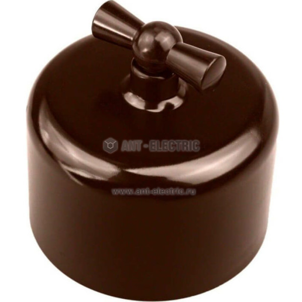 Выключатель 1-клавишный проходной, пластик, коричневый