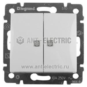 VALENA Выключатель двухклавишный 10A с индикацией белый