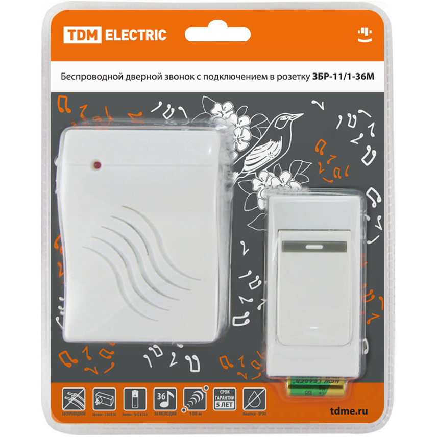Возможные обозначения: Звонок ЗБР-11/1-36М (беспр., роз.) TDM, SQ1901-0008